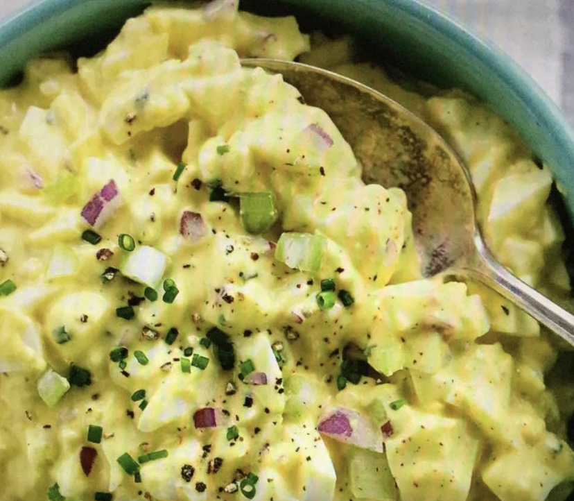 Combine eggs with remaining ingredients and mix well. Trying not to mash the eggs. Refrigerate until ready to serve.