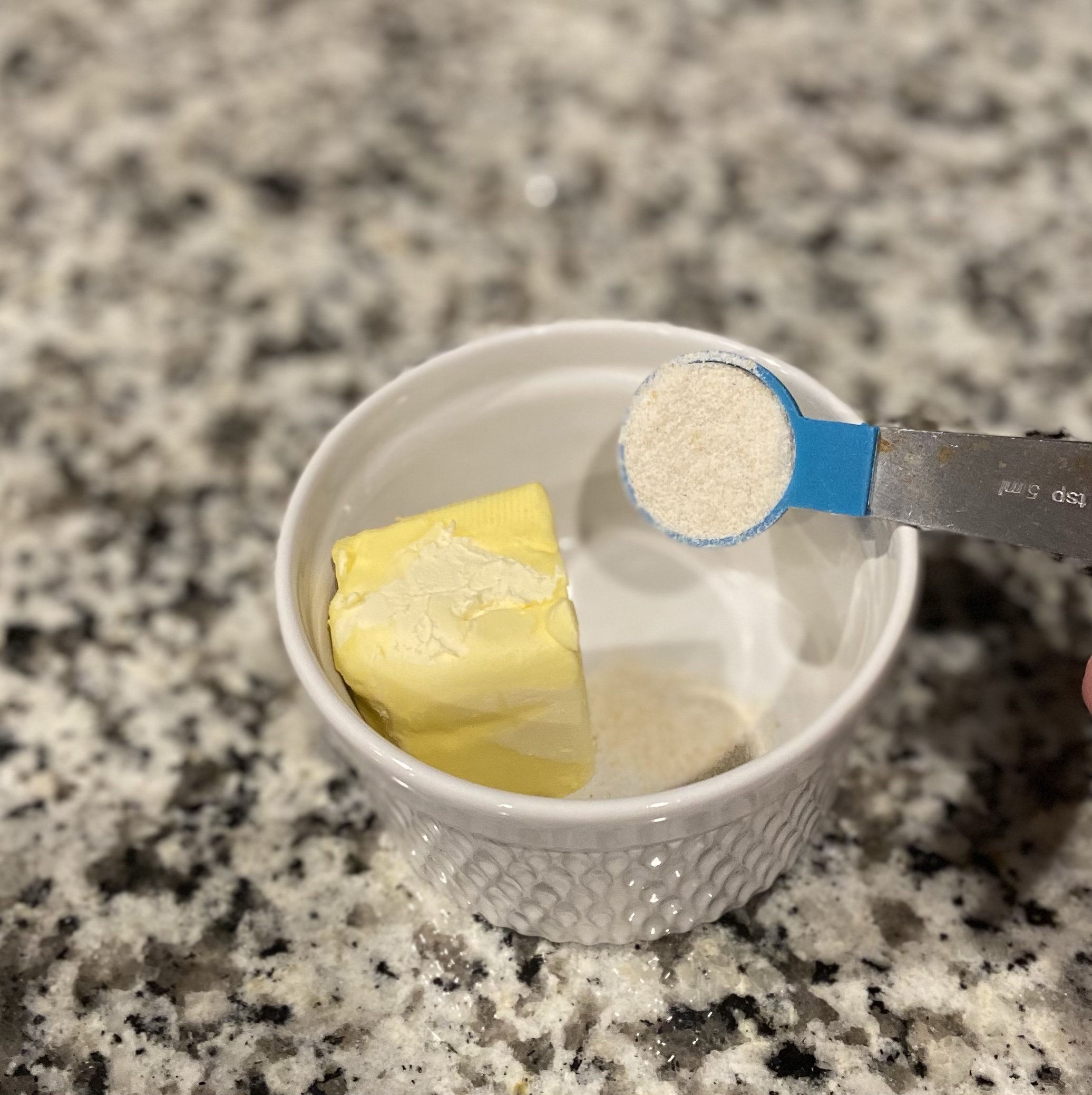 - Combine the butter and garlic salt in a small microwave safe bowl. Place in in the microwave for 10-15 seconds or until mostly melted. Stir and then brush over the panini covering completely.