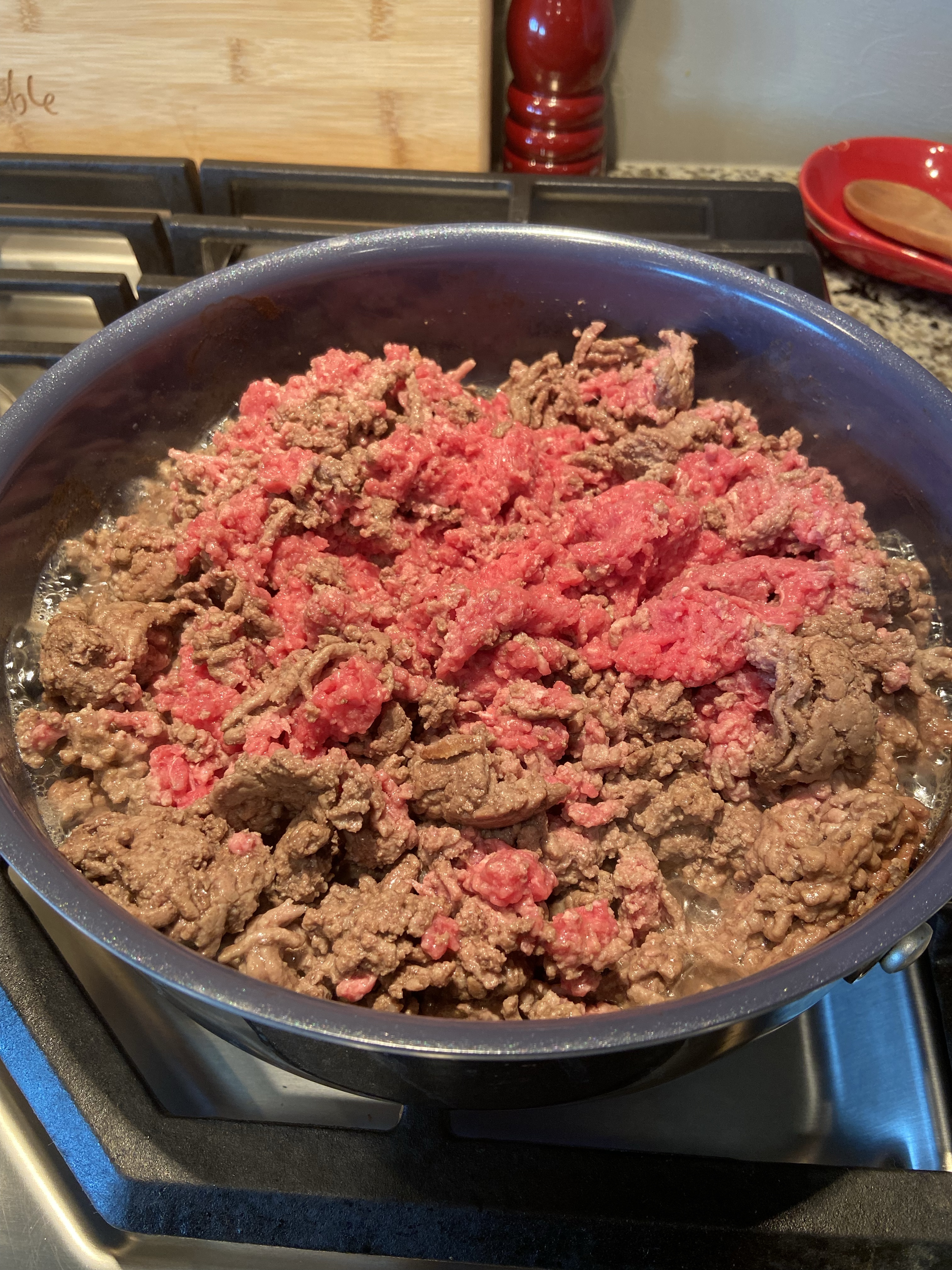 Brown the ground Beef and drain.