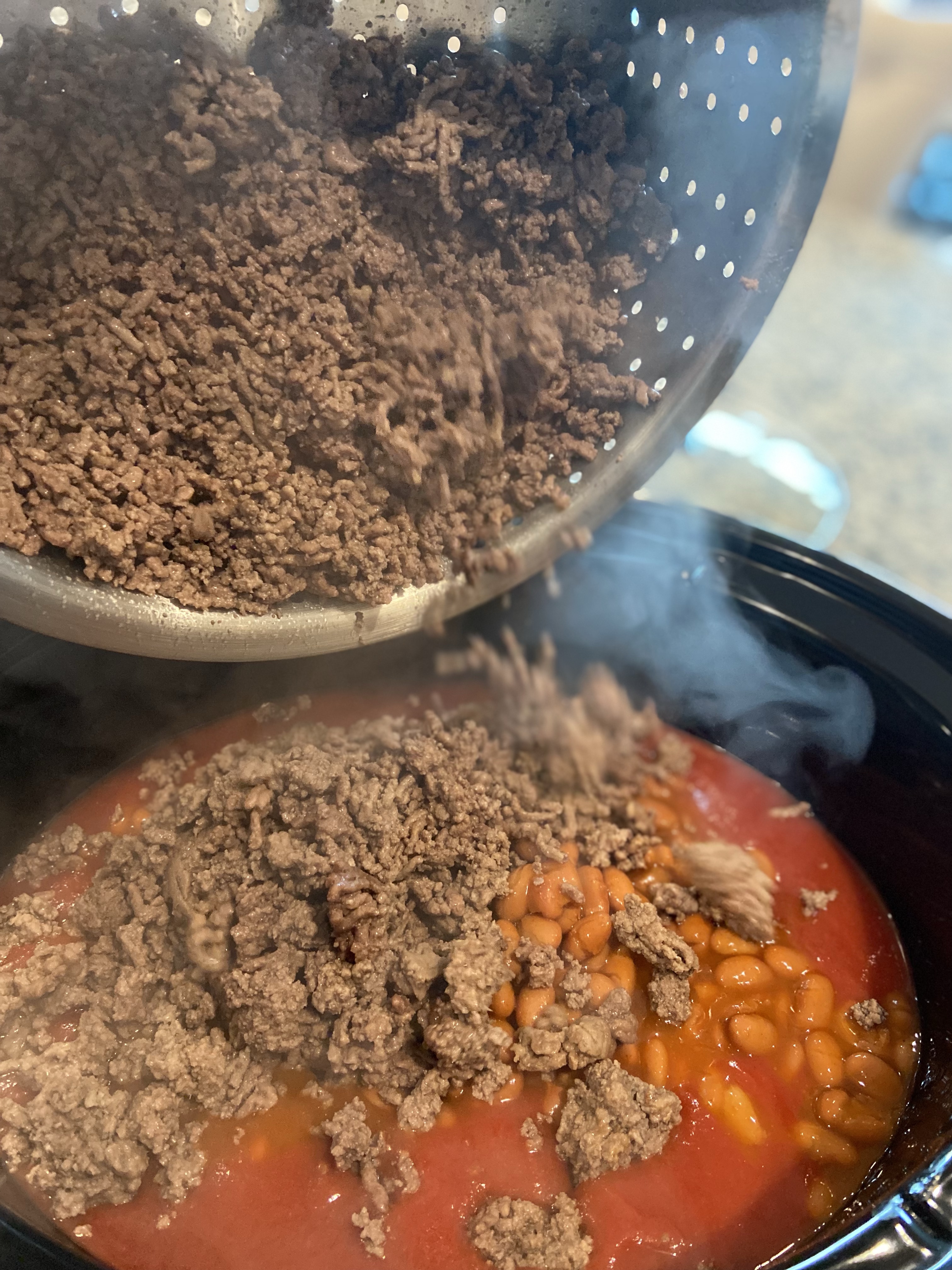 Place all ingredients to Crock pot, Add cooked Beef.