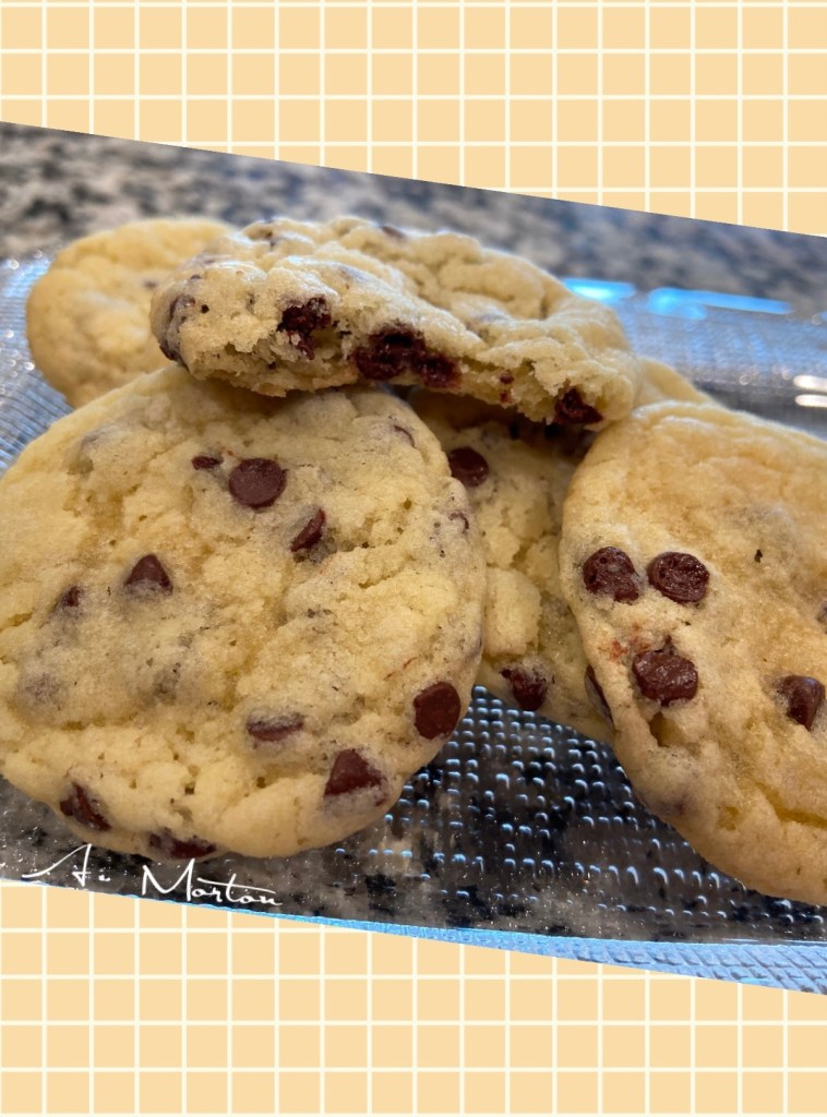 - Cream together butter, shortening, 1 1/2 cups sugar, the eggs and the vanilla. Blend in the flour, cream of tartar, soda and salt. Mix until creamy and then add chocolate chips and incorporate completely.
