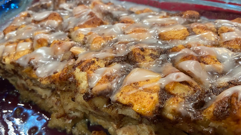 - Top with the icing from the cinnamon rolls.