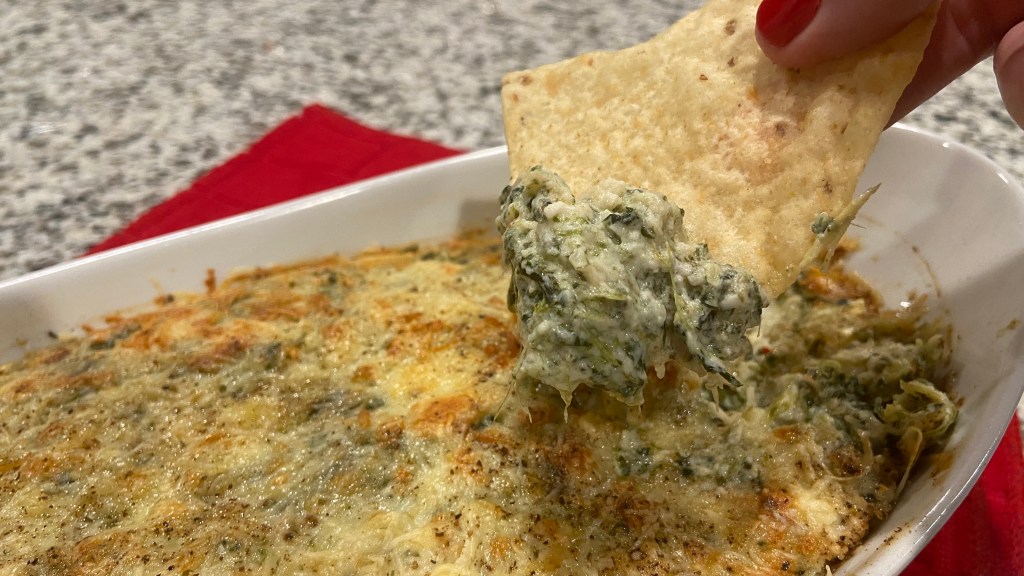 - Bake until bubbly and slightly golden, 30 minutes. If you’d like the dip to develop a more golden top, broil on high for 2 minutes.