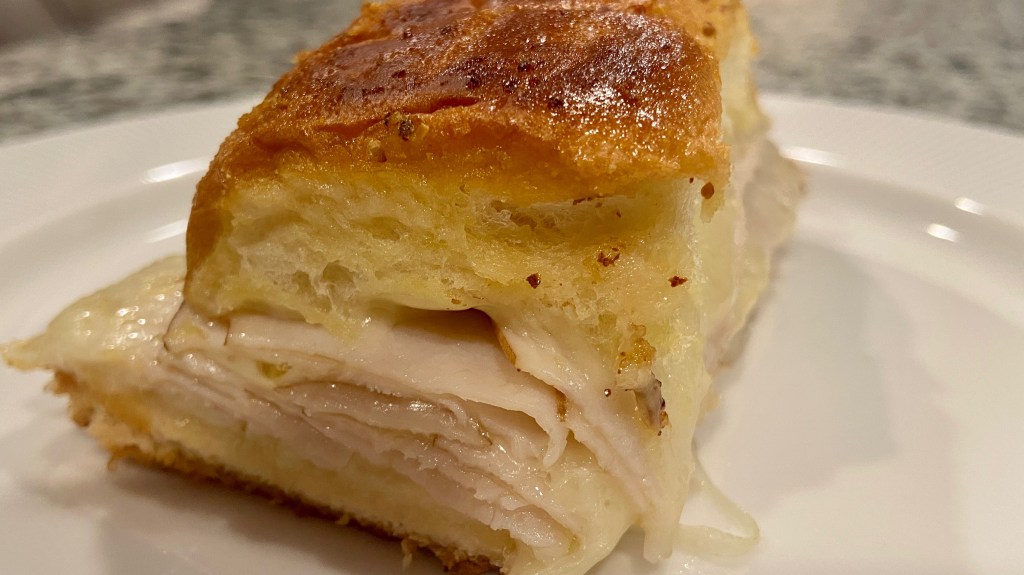 - Layer turkey and cheese on rolls.